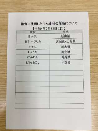 令和4年7月13日(水)【今日の給食】