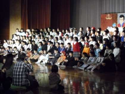 6年生によるエンディングです。それぞれの学年のよさについて感想を述べているところです。仲良しパートナーの1年生の演技をする姿を見て、その成長を自分のことのように喜んでいますという言葉もありました。日常のかかわりの積み重ねが豊かな心をはぐくんでいるのだと思います。