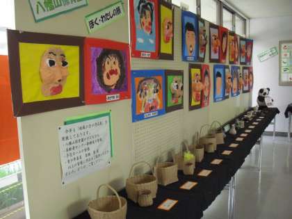 体育館入り口手前に設けた「地域の方の作品展」の様子です。昨年に引き続き2回目でした。今回は、八幡山保育園の子どもたち、芦花ホームの皆様、新樹宛の皆様、青少年委員の方にご協力いただきました。土曜日には、八幡山保育園の子どもたちが学芸会と作品展を見に来てくれました。これからも地域との連携を大切にしていきます。