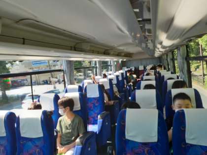 日光に向けてバスが出発しました。写真は4号車の様子です。