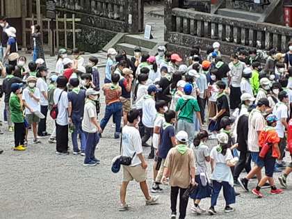 ここから、宿舎に向かいます。宿舎に着いてからは、開園式→入室→避難訓練→夕食の順番に行われます。