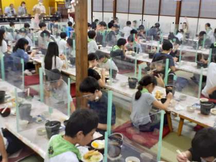 その後、食堂に移動をして美味しい夕食をいただきます。たくさん食べて次の活動と明日に備えます。