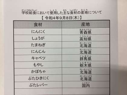 9月8日(木)今日の給食