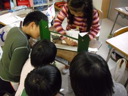 子どもたちのお店はまだまだあります。どんぐり人形がお芝居をする「どんぐり劇場」では、どんぐり人形を手で動かしながら創作したお話を演じていました。どんぐりを使ったゴルフゲームやピンボールゲームなど、転がることを利用したゲームもありました。この他にもたくさんのお店がありましたが、子どもたちのアイデアや発想の豊かさを嬉しく思います。
