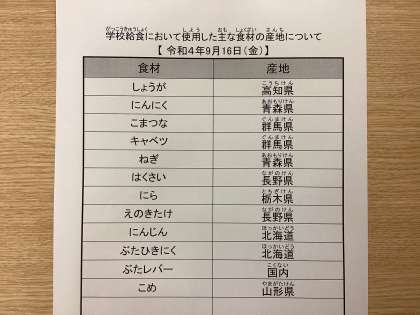 9月16日(金)今日の給食