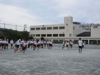 3・4校時は、6年生が、杉本先生から速く走るための方法を聞いて、実際に体験しながら学びました。子どもたちは、汗をたくさんかきながら、楽しそうに取り組んでいました。連合運動会に向けて、よい練習ができました。