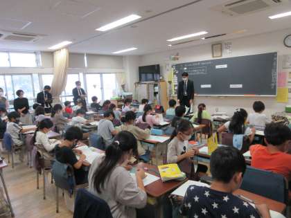 10月5日(水)5校時、4年1組の教室では、社会「受けつがれる年中行事〜世田谷ボロ市〜」の学習が行われていました。