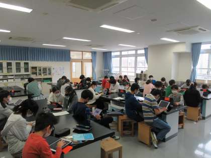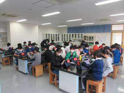 10月6日(木)3・4校時、理科室では、6年1組の理科「月の形と太陽」の学習が行われていました。