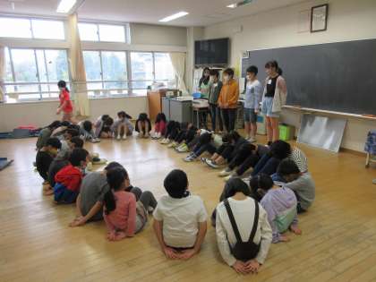 今日の1時間目に芦花っ子タイム(縦割り班活動)がありました。リーダーの6年生を中心に、どのグループも1年生から6年生までの子供たち(ひかり学級の子供たちも一緒に)がみんな楽しく笑顔いっぱいで「ハンカチおとし」などをしていました。これからも子供たちが力を合わせて頑張り、芦花っ子タイムを盛り上げていきたいと思います。