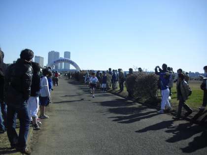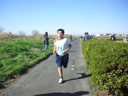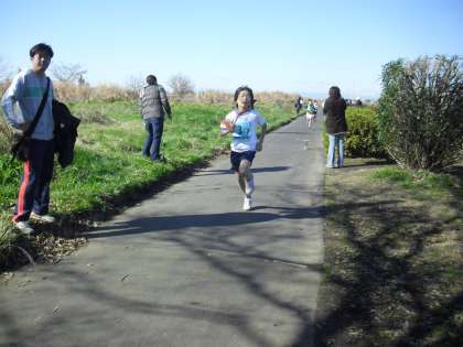 午前10時30分、小中学生の部がスタートしました。ナンバープレートを付けた小中学生12名が襷を繋ぎます。合計の走行距離は16kmです。芦花はオレンジの襷です。