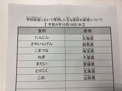 10月19日(水) 今日の給食