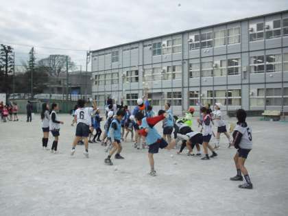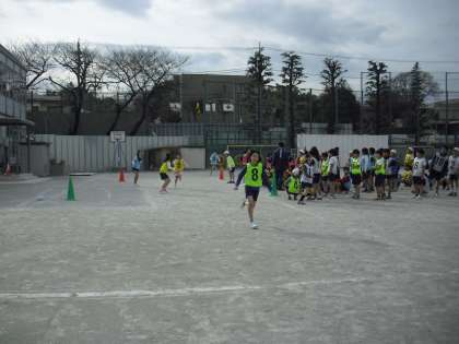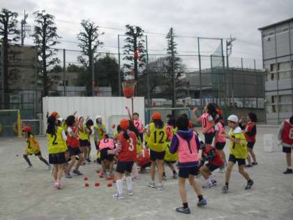 5年生の学年集会の様子です。玉入れをしているところです。5年生はねらって投げることができるので、玉もたくさん入ります。入った玉の数を数えるときも元気よく声を出して楽しんでいました。全員でのリレーも迫力がありました。