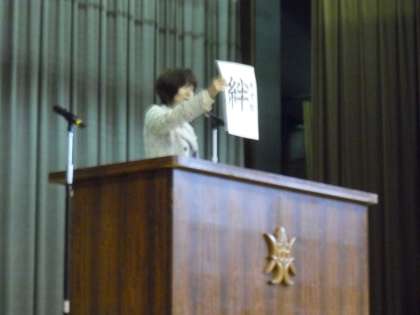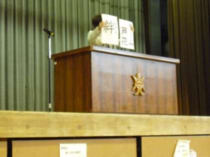 渡部校長は、2学期の子どもたちの活躍から互いの絆を深めていったという意味で「絆」という漢字を紹介しました。また、今年を象徴する漢字でもあります。あわせて「チーム芦花」という言葉も紹介しました。6年生を中心に「チーム芦花」という言葉が学校に広がり、さらに絆を深めることができたことについて紹介しました。