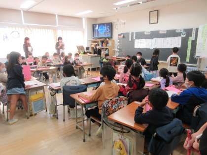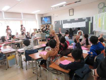 10月26日(水)5校時、1年5組の教室では、学級活動「みんなともっとなかよくなるための おたのしみかいをしよう」の学習が行われていました。