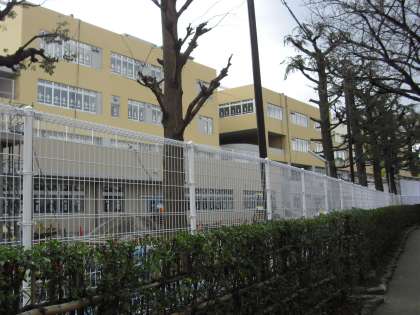 給食の調理室側から小学校棟の方を写したものです。何といっても目に校舎の大きさがとびこんできます。2階の昇降口への階段も形を整えつつあります。現在のところ工事は予定通りに進んでいます。