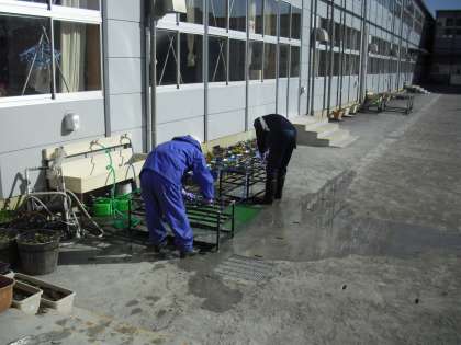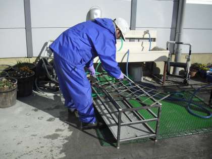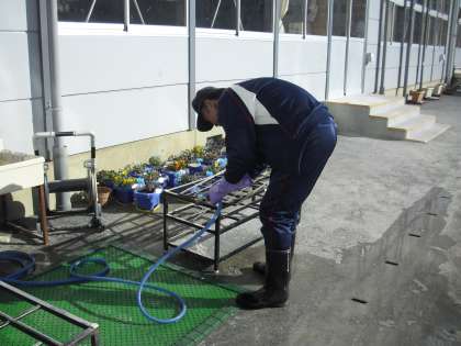 3学期に子どもたちが気持ちよく学校生活を送ることができるように、校内外の様々なところをきれいにしてくれている主事さんです。気温が低く寒いのですが、傘立ての汚れを水とタワシを使って洗い落としているところです。