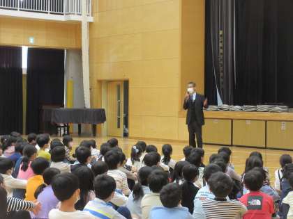 1・2年生は、昨日の3・4年生に続いてセーフティ教室をしました。