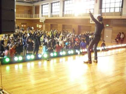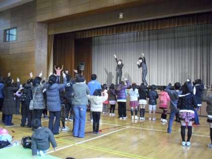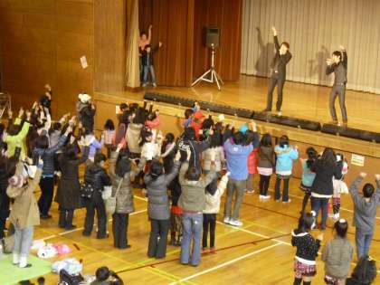 ジャンケン大会の後は、さらにノリのよい曲でいっしょにジャンプをするなど会場と一体になったLIVEを行いました。子どもも保護者も先生もいっしょになって盛り上がりました。