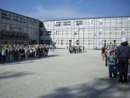 避難訓練の様子です。今回の想定は「授業中に理科室から出火、避難を要す」です。子どもたちは、静かに速やかに先生方の指示を守り避難しました。普段から真剣に取り組むことが、いざというときに命を守ることにつながります。