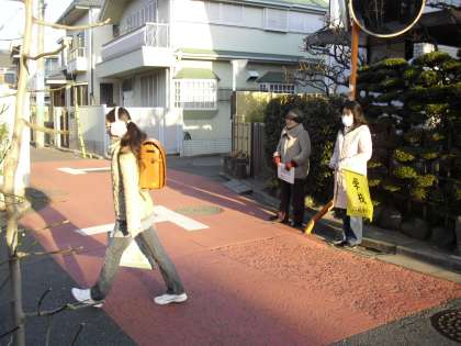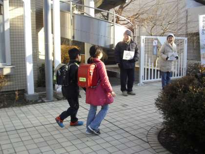 今朝のあいさつ運動の様子です。今日も地域サポーターカードを手に地域の方々が立ってくださっています。今日も寒さは厳しいですが、朝から日差しが暖かく感じます。地域の方が子どもたちをやさしく見守ってくださる芦花の町です。