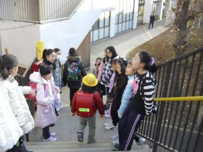 今日は2年生と5年生があいさつ運動に取り組んでいます。いっしょに並んで元気よくあいさつを交わしていました。中学生も各校門に分かれてあいさつをしています。気持ちのよい朝です。