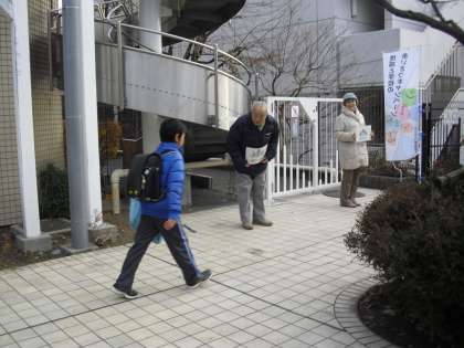 今朝のあいさつ運動の様子です。上から郵政公社前、西門、南西門です。今日も地域の方々が子どもたちとあいさつを交わしてくださっています。西門では、子どもたちもいっしょに活動しました。今日も「おはようございます」の声が芦花の町に響きます。