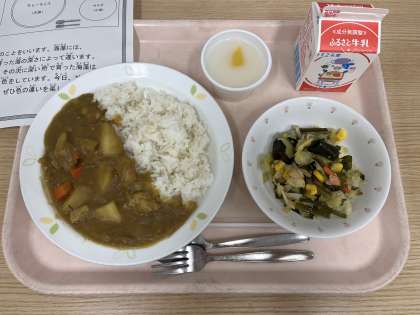 今日は、カレーライス、海藻サラダ、ホワイトゼリー、牛乳です。
