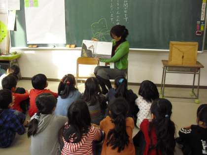 今朝の読み聞かせの様子です。今日もたくさんの保護者の方々が読み聞かせのボランティアに来てくれました。子どもたちは集中して聞いています。読み聞かせの効果は様々ですが、「聞く」経験が多い子どもは、「人の話を聞くことができる」「聞いてイメージすることができる」力を身に付けていきます。それだけでなく、聞くことで語彙が増え、「話す」「読む」「書く」力も伸びるといわれています。