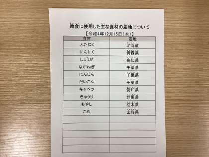 令和4年12月15日(木)今日の給食