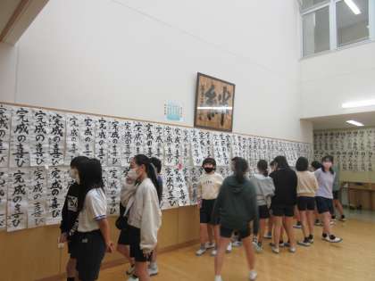中学生の迫力ある書き初め、丁寧に仕上げた美術作品や技術作品・家庭科の作品、