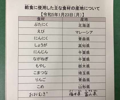 令和5年1月23日(月)今日の給食