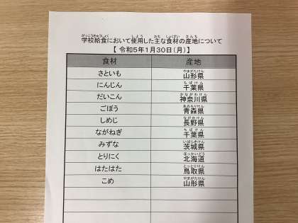 令和5年1月30日(月)今日の給食