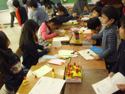 2年生の芦花フェスタの様子です。1年生をお客さんとして招待し、2年生はお店の運営をしました。1年生が楽しめるように、やさしく接する2年生。立派なお兄さん、お姉さんでした。ルールを教えたり、作り方を教えたりしながらかかわり合いを深めていました。