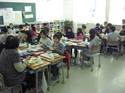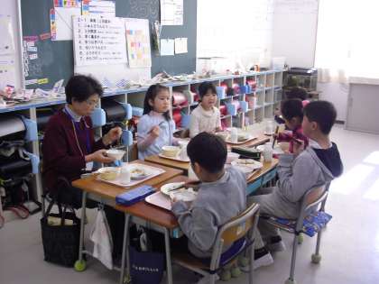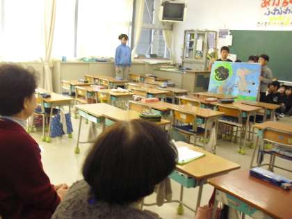 楽しく会話をしながら一緒に給食を食べているところです。会食後は、保育園や芦花ホームでの交流で活用した大型絵本の読み聞かせをしました。喜んでいただき、子どもたちもとても嬉しそうでした。短い時間でしたが、温かなふれあいをはぐくむことができました。