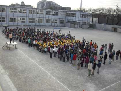 今朝の全校朝会の様子です。渡部校長が「あいさつ」「5分前行動」等、芦花の自慢できるところをたくさん紹介しましたが、その一つとして、あと2ヶ月しか使わない仮設校舎も子どもたちが気持ちよく生活できるようにきれいにしてくださる主事さんの仕事について話しました。主事さんは子どもたちの安全とともに学校を毎日きれいにしてくれます。登下校の時に、主事さんに会ったらあいさつするだけでなく「いつもありがとうございます」とお礼が言える芦花の子に育ってほしいと願っています。