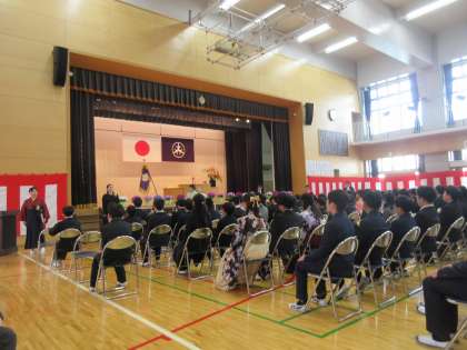3月24日(金)、正門の桜の花がきれいに咲き誇る中、卒業生182名が、無事に卒業証書を受け取りました。