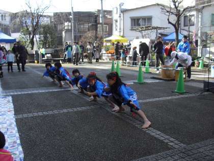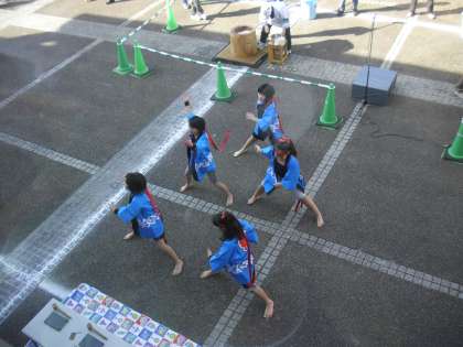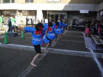 第14回粕谷区民センターまつりの様子です。オープニングを飾ったのは芦花小の子どもたちによる「ソーラン節」のダンスです。まだ、この時間は寒さも厳しい時間帯でしたが、法被を纏い、素足で力強く踊り、会場を盛り上げました。