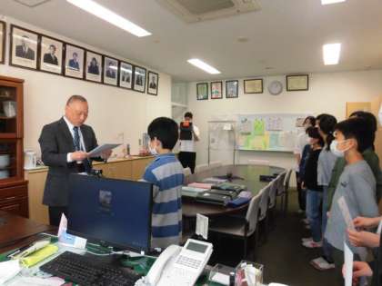 令和5年度委員会活動の委員長に、校長先生より委嘱状を渡しました。