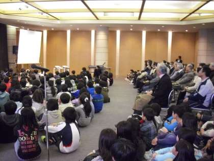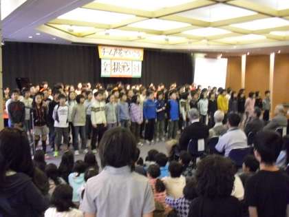 谷川俊太郎の詩「生きる」では、うなずきながら聴いてくださる方もいました。また、1年間生活してきた中で自分自身へ贈る名言を書き綴ったスライドでは、その言葉に感激された方もいらっしゃいました。子どもたちの成長を支えてくださった地域の方々も、その成長をいっしょに振り返ってくださっているようでした。