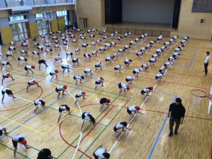 今日は、体育館で練習しました。