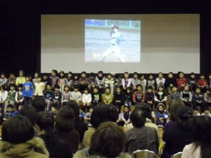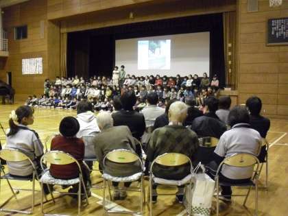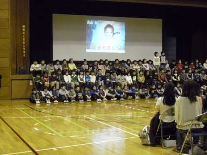 一人一人が今がんばっていることや将来の夢について語る「今のぼく・わたし」の様子です。スクリーンには子どもたちの小さい頃の写真が映し出されます。幼い頃の表情と、堂々と自分の夢を語る表情を見比べると、一人一人の確かな成長を感じます。