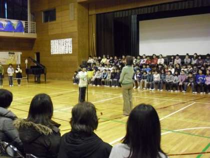 全員合唱は「Best Friend」です。伸びやかな2部合唱が体育館に響きます。歌の後にお世話になった先生方や地域の方に感謝の手紙を手渡しました。そして、これまでの成長を支えてくれた家族に感謝の気持ちを伝えます。保護者からも子どもたちに成長を祝う言葉が贈られました。