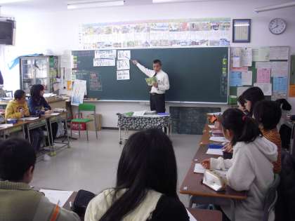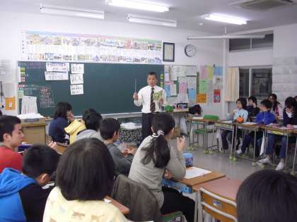 6年生の特別授業キャリア教育の様子です。指導しているのは中学校の野口校長です。働くことからイメージすることや言葉を考えていく中で、小中学校生活の違いや中学校生活のキーワードから、中学校生活に向けての心構えについて学びました。子どもたちは真剣な表情で話を聞きました。このような連携も施設一体型校舎ならではです。