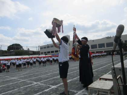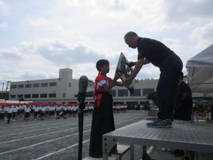 全ての競技が終わり、閉会式となりました。得点発表のときはみんなわくわくドキドキ…。結果は白組の勝利となりました。得点はわずかな差でしたが、芦花小学校の子どもたちは赤組の子も白組の子も本当によく頑張りました!