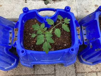 ミニトマトの種類は「ルビー」です。どんな実を実らせるのかわくわくしながら苗を植えました。水あげを欠かさずして,美味しいミニトマトになると良いですね。