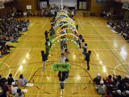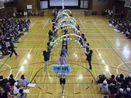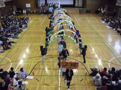 全員に祝福されて、6年生が退場していきます。あっという間の2時間でした。各学年からの心のこもったお祝いの演技は6年生に十分に伝わったと思います。最後の一人が体育館を出るまで大きな拍手で見送りました。6年生との生活もあとわずかです。