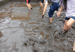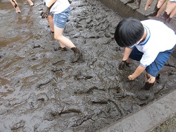 「足が沈む〜!」「人が作業するのは、機械と違って大変!」など、様々な感想をもっていました。