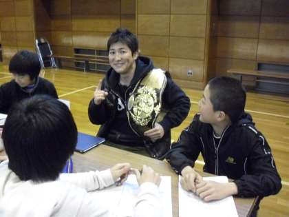 格闘家の方です。アメリカでの格闘技の試合で獲得したベルトを持参してくれました。子どものころの話から、格闘技を始めた話まで、バラエティに話をしてくれました。