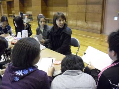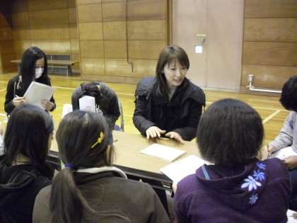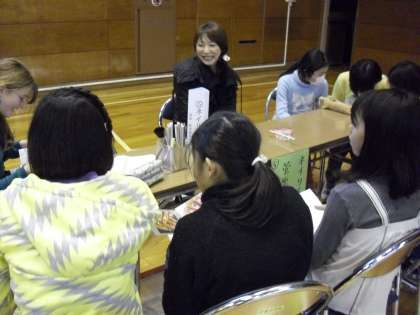 ネイリストさんです。6年生の女子は興味深く、ネイリストさんが持参したネイル雑誌に見入っていました。様々なデザインがあることに子どもたちは、興味や関心を寄せていました。