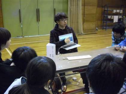 ゲーム・音楽プロデューサーさんです。ご自分のプロデュースしたゲームや音楽の様子をパソコンで見せてくれながら、その仕事のおもしろさについて話してくれました。